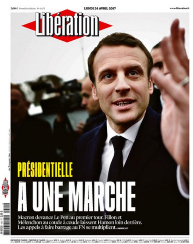 Η εφημερίδα Le Temps της Ελβετίας, επαναφέροντας τον όρο «νέο σύνορο», που είχε χρησιμοποιήσει ο Αμερικανός πρόεδρος Τζον Κένεντι, ελπίζει σε μία νίκη του Εμανουέλ Μακρόν: «Αυτός ο νέος πρόεδρος, ούτε καν 40 ετών, μπορεί να δώσει ένα νέο σύνορο στην Γαλλία και να βελτιώσει την τύχη των Γάλλων». Όμως η εφημερίδα θεωρεί ότι «με το Εθνικό Μέτωπο, οι απόγονοι της Γαλλίας των συνεργατών και της γαλλικής Αλγερίας βρίσκονται στις πύλες της εξουσίας».