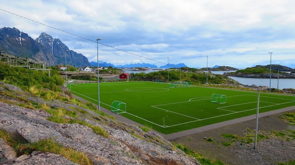 Το Henningsvær Idrettslag Stadion στο μικρό ψαροχώρι Henningsvær, που βρίσκεται σε δύο μικρά νησιά κοντά στο Lofoten, στη Νορβηγία, είναι εντυπωσιακό μόνο από τη θέση του. Το γήπεδο βρίσκεται σε μια βραχώδη νησίδα που περιβάλλεται από θάλασσα, χαρίζοντας στους θεατές εκπληκτική θέα στα βουνά και στην ανοικτή θάλασσα.