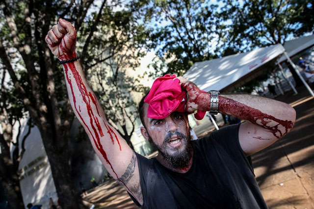 Χιλιάδες Βραζιλιάνοι συγκεντρώθηκαν στην Μπραζίλια, ανταποκρινόμενοι στο κάλεσμα συνδικαλιστικών φορέων και πολιτικών οργανώσεων, προκειμένου να διαδηλώσουν απαιτώντας την παραίτηση του προέδρου Μισέλ Τέμερ, που κατηγορείται πως εμπλέκεται σε σκάνδαλα διαφθοράς.