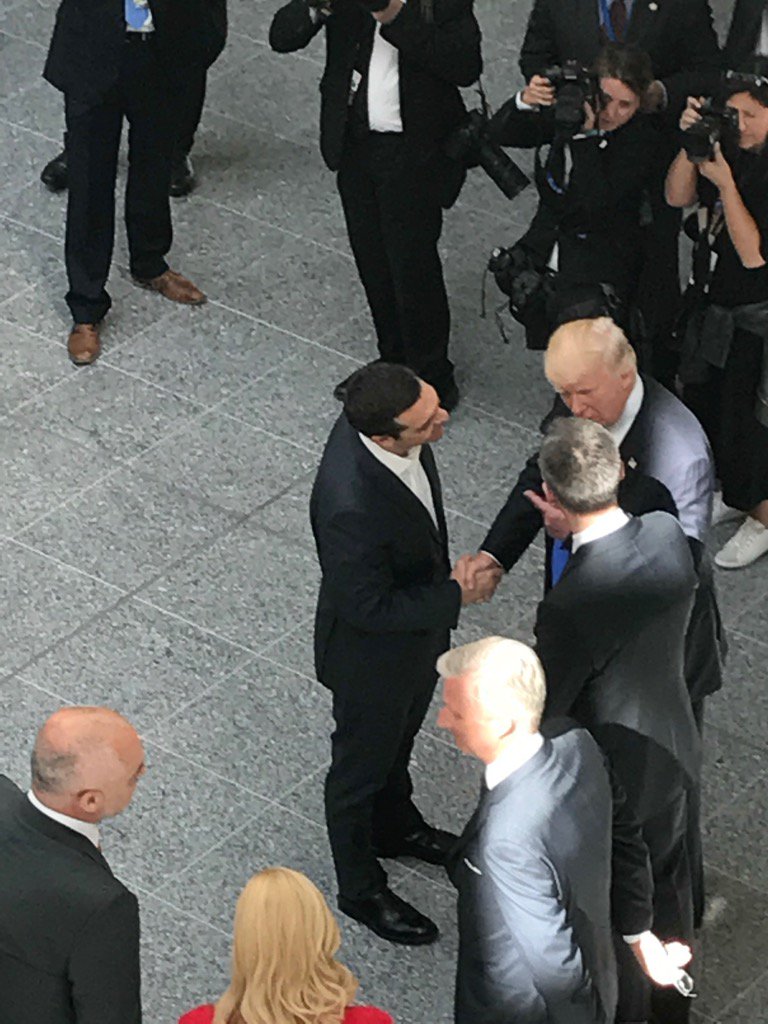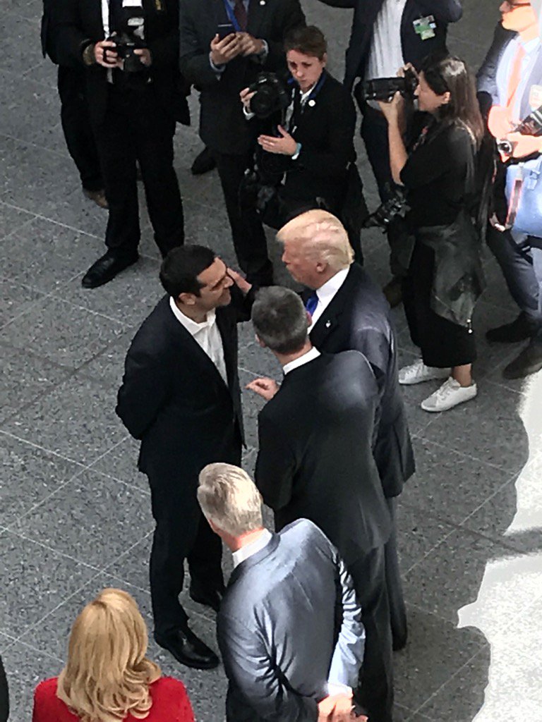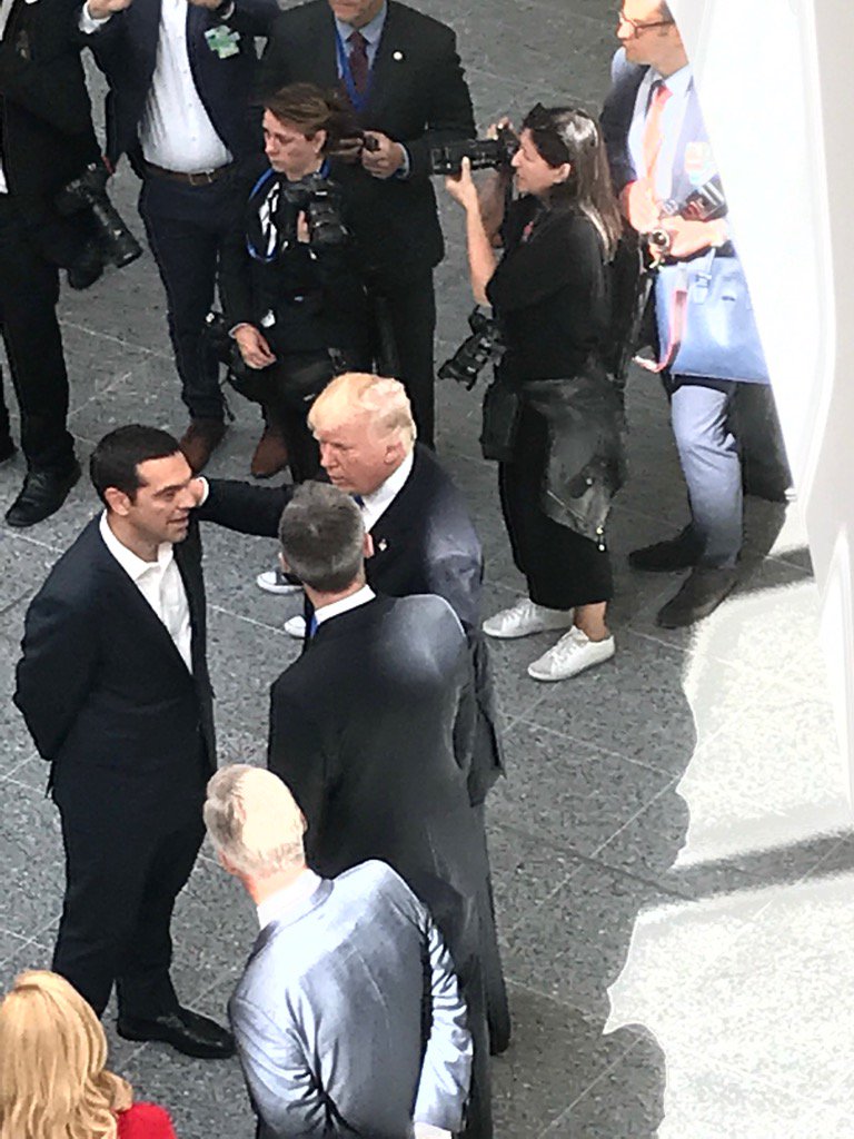Ολιγόλεπτο τετ-α-τετ με τον Ντόναλντ Τραμπ είχε ο Έλληνας πρωθυπουργοός Αλέξης Τσίπρας στις Βρυξέλλες πριν την έναρξη της Συνόδου του ΝΑΤΟ.