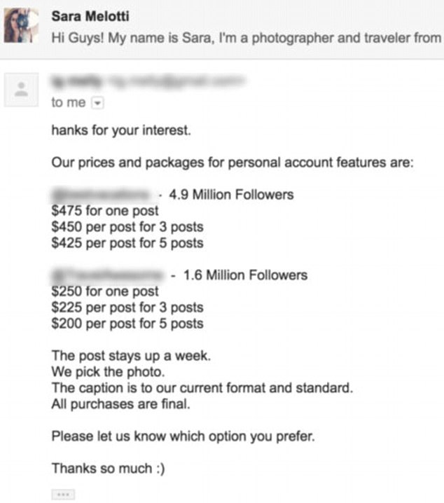 Επιπλέον οι Instagrammers, πληρώνουν ιστοσελίδες που συγκεντρώνουν post από το Instagram προκειμένου να προβάλλουν τις αναρτήσεις τους. Αρκετές σελίδες άρχισαν να ζητούν χρήματα για να τους συμπεριλάβουν με τις τιμές να φτάνουν ακόμη και τα 475 δολάρια ανά post. «Είναι απίστευτο το γεγονός ότι αυτοί οι άνθρωποι, που χτίζουν τις επιχειρήσεις τους με ελεύθερο περιεχόμενο που πήραν από εμάς, ζητούν τώρα από τους καλλιτέχνες να πληρώσουν!», λέει η Σάρα.