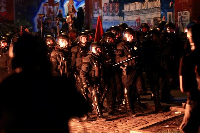 Η ομοσπονδιακή αστυνομία ανακοίνωσε ότι λίγο πριν τις 09:00 (τοπική ώρα, 10:00 ώρα Ελλάδας) «πραγματοποιήθηκε μια επιχείρηση βίαιων προσώπων» που πετούσαν βόμβες μολότοφ και πυρπολούσαν περιπολικά στη συνοικία Αλτόνα, κοντά σε ένα αστυνομικό τμήμα.