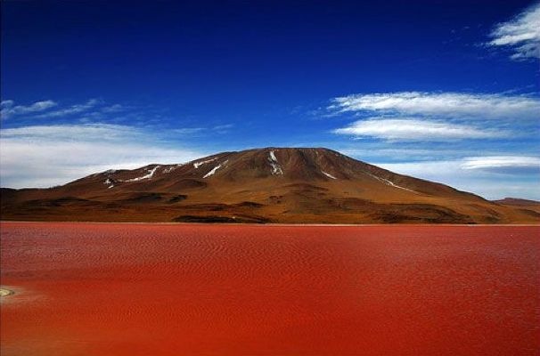 Η Lago Colorada βρίσκεται στη Βολιβία και περιέχει κόκκινο νερό, ενώ το τοπίο μοιάζει με εξωγήινο, αν και είναι ιδιαίτερα αγαπημένο στα φλαμίνγκο.