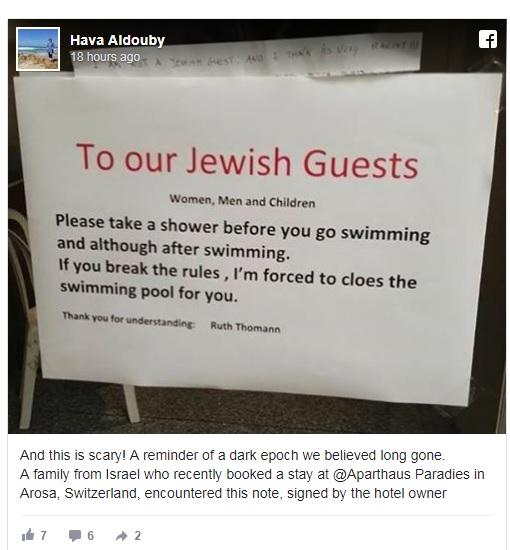 Η υπεύθυνη του ξενοδοχείου, προσπαθώντας να δώσει μια εξήγηση στα όσα έγραψε, δήλωσε πως «έγραψα κάτι αφελές. Προφανώς έπρεπε να απευθυνθώ σε όλους μας τους πελάτες και όχι μόνο στους Εβραίους. Ο λόγος για τον οποίο ανήρτησα τη συγκεκριμένη πινακίδα ήταν πως δεχθήκαμε παράπονα για πελάτες που δεν έκαναν ντους πριν τη χρήση της πισίνας».