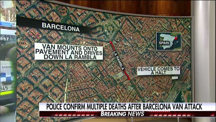 In #Barcelona van reportedly plowed into a crowd of ppl in busy outdoor mall (Rambla de Catalunya). Police on scene pic.twitter.com/Z9n3uvFmWy