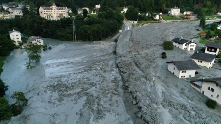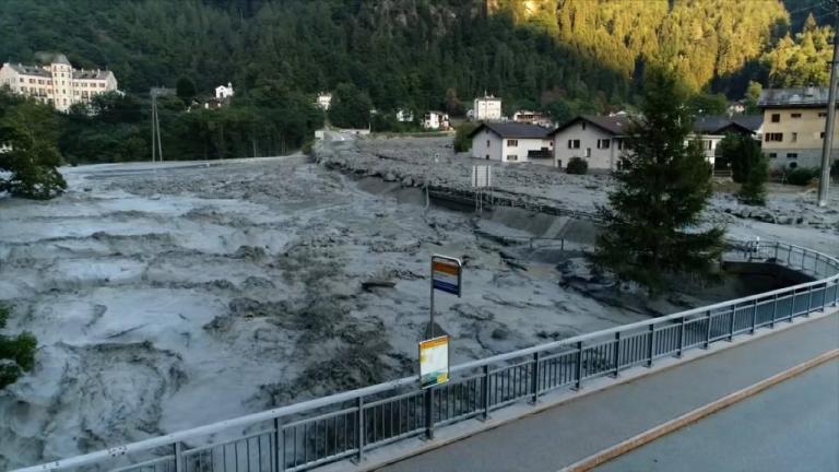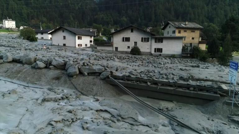 Βράχια έπεσαν στην κοιλάδα πίσω από το μικρό χωριό Μπόντο στο καντόνι Γκρισόν. Η κατολίσθηση στη συνέχεια έφτασε έως το χωριό.