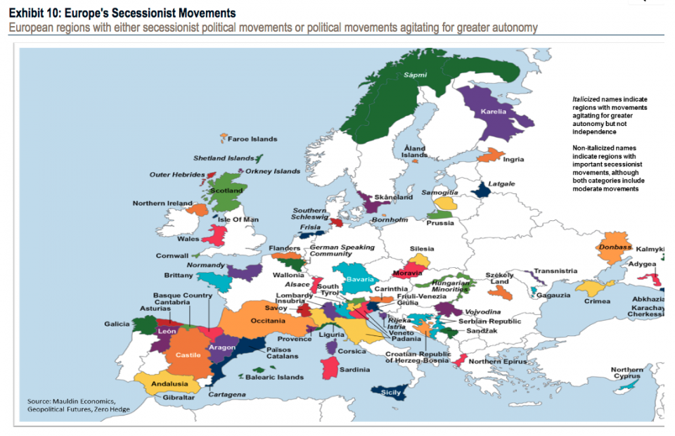 Ο παρακάτω χάρτης αποτελεί ένα πανόραμα με τις περιοχές, όπου είτε υπάρχει συγκροτημένο αυτονομιστικό κίνημα είτε πολιτικές δυνάμεις ή άλλες ομάδες εκφράζουν τέτοιες βλέψεις.