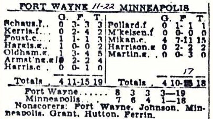 Ο σέντερ Τζορτζ Μάικαν είχε σημειώσει τους 15 από τους συνολικά 18 πόντους των «Λιμνανθρώπων», οι οποίοι εκείνη τη σεζόν δεν έπεφταν ποτέ κάτω από τους 63 πόντους σε κάθε αγώνα. Στην αντίπερα όχθη, κανένας παίκτης των «Πιστονιών» δεν μπόρεσε να σημειώσει περισσότερους από πέντε πόντους.