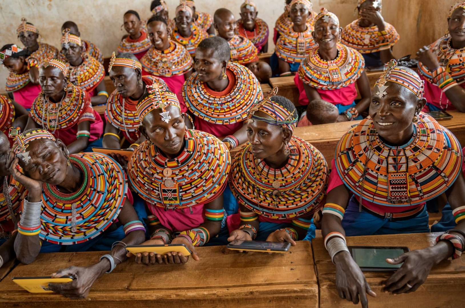 Η επιθυμία τους να διδάξουν πληροφορική τα παιδιά τους οδήγησε αυτές τις γυναίκες της φυλής Samburu στα θρανία σε έναν χώρο βόρεια του Ναϊρόμπι. Μαθαίνουν για τον τρόπο που μπορούν μέσω του διαδικτύου να έχουν πρόσβαση σε εκπαιδευτικά προγράμματα. Η τεχνολογία έχει φθάσει και σε απομονωμένες περιοχές της Αφρικής κυρίως με τη μορφή σχετικά φθηνών κινητών τηλεφώνων. Φωτο: Ciril Jazbec, National Geographic