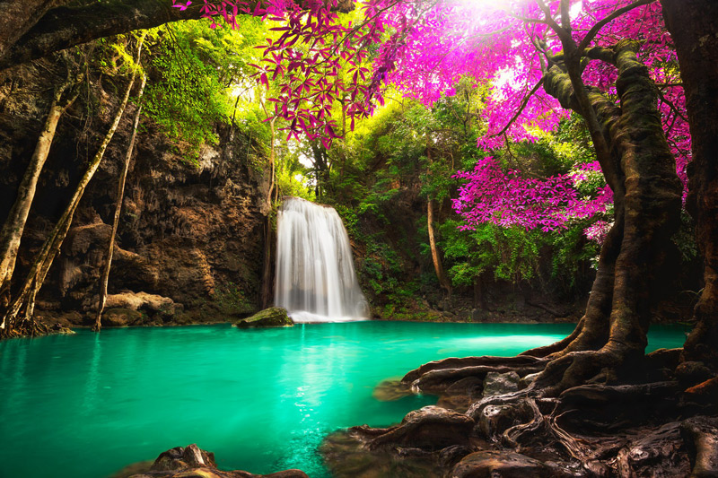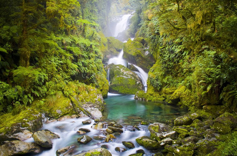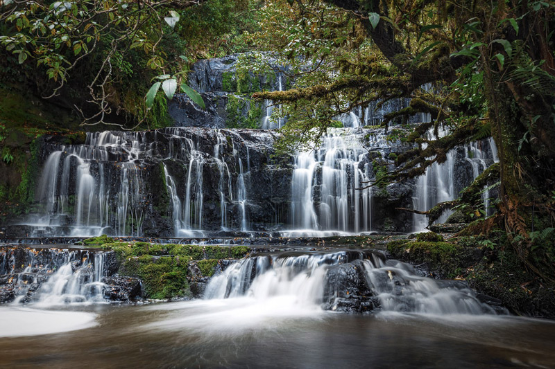 Κρυμμένοι από τα πυκνά φύλλα και τους ψηλούς κορμούς, οι καταρράκτες που «κόβουν» στη μέση τα δάση δίνουν στο τοπίο μια νότα... παραμυθιού.
