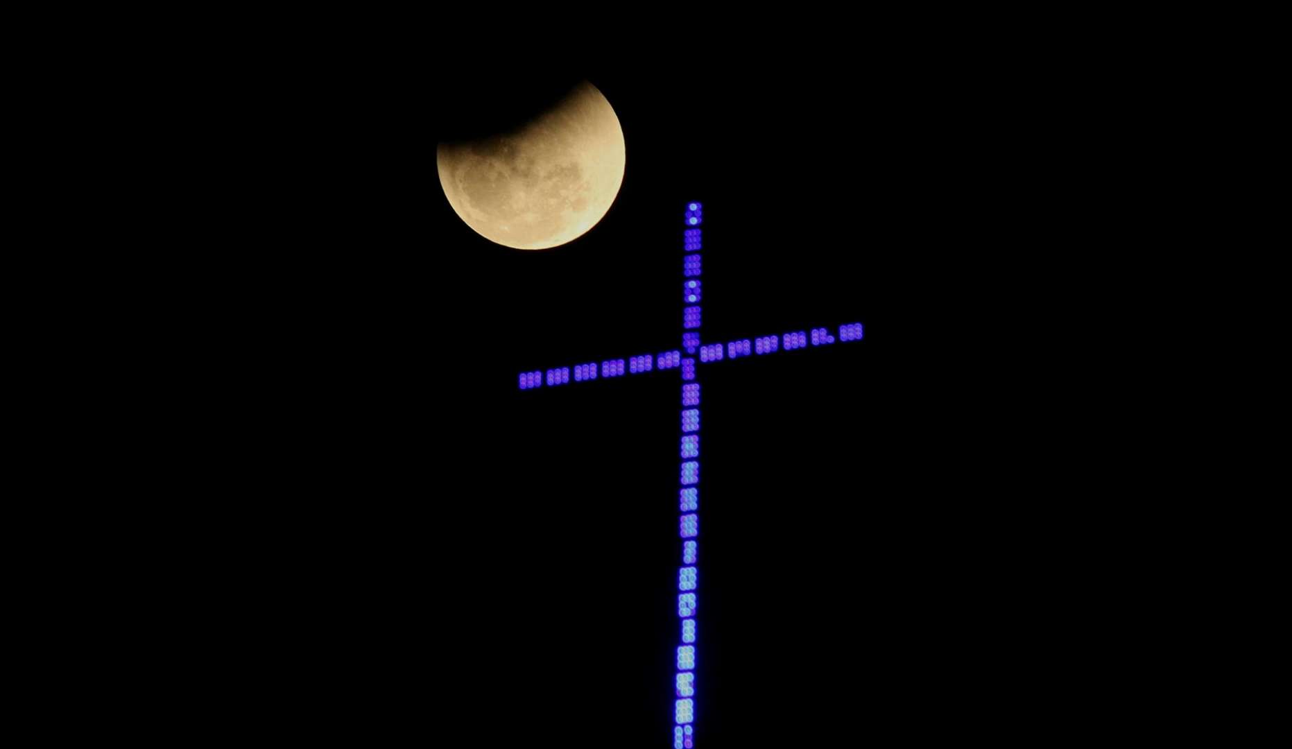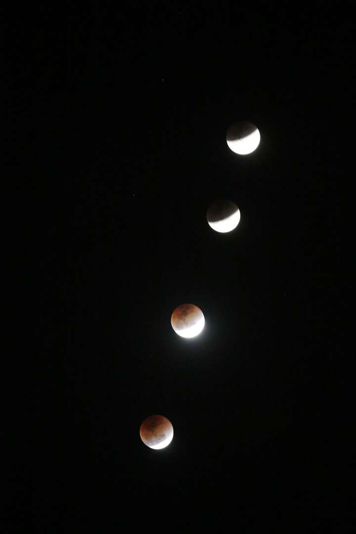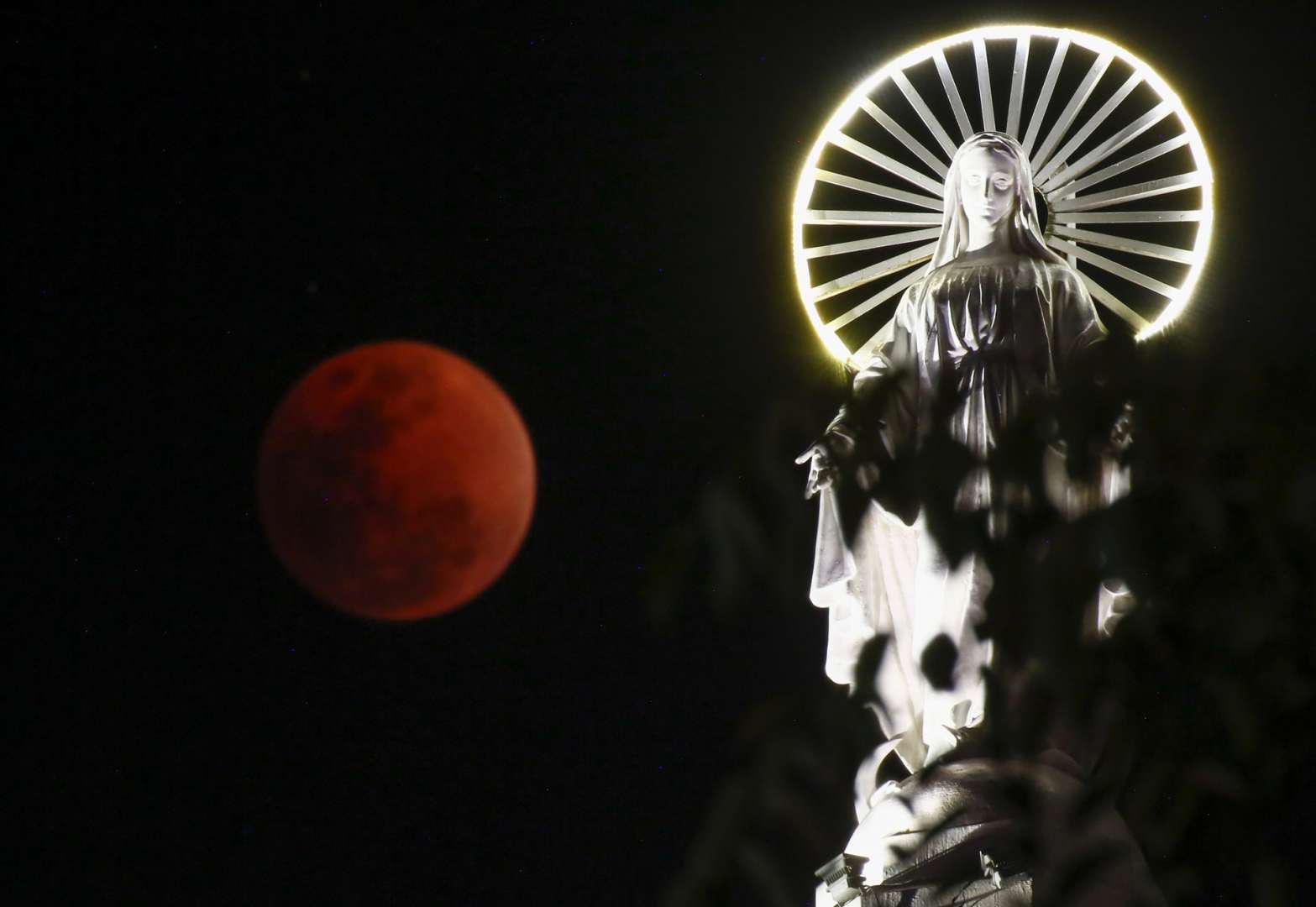 Χιλιάδες άνθρωποι συγκεντρώθηκαν στην Καλιφόρνια για να δουν τη Σελήνη να χάνεται, κρυμμένη από τη σκιά της Γης και μετά να επανεμφανίζεται κατακόκκινη, εξ ου και η ονομασία "ματωμένο φεγγάρι".