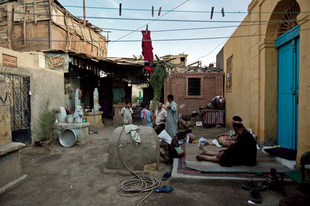 Λίγο πιο μακριά από το κέντρο της πολύβουης αιγυπτιακής πρωτεύουσας βρίσκεται η παραγκούπολη που έχει χτιστεί μέσα στο μουσουλμανικό νεκροταφείο Bab el Nasr. Ανάμεσα σε τάφους και μαυσωλεία συναντά κανείς μικρά αυτοσχέδια σπίτια, καταστήματα και εργαστήρια. Στους «δρόμους» βλέπει παιδιά να παίζουν και πλανόδιους να πωλούν την πραμάτεια τους.