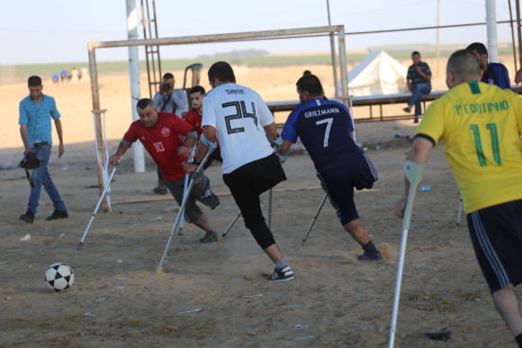 Η Γάζα έχει τρεις ειδικές ομάδες ποδοσφαιριστών των οποίων τα πόδια έχουν ακρωτηριαστεί λόγω τραυματισμών από τα ισραηλινά πυρά.