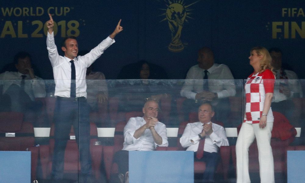 Το «παρών» έδωσε ο πρόεδρος της Γαλλίας Εμανουέλ Μακρόν στον μεγάλο τελικό και, όπως φαίνεται, έζησε έντονα τις στιγμές μέχρι την λήξη του παιχνιδιού και την επικράτηση επί της Κροατίας.