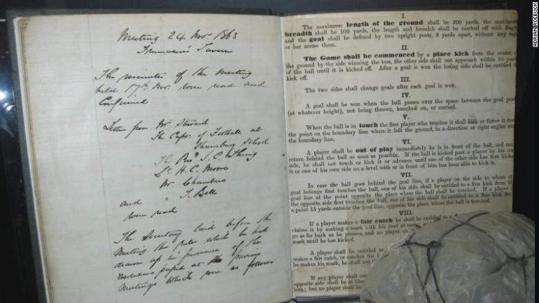 Χειρόγραφο με τους κανόνες, στο Εθνικό Μουσείο Ποδοσφαίρου στο Μάντσεστερ