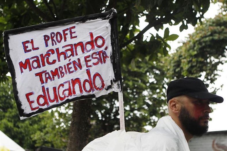"Ο δάσκαλος που πορεύεται εκπαιδεύει κιόλας". Αυτό ήταν ένα από τα συνθήματα στις μαζικές συγκεντρώσεις διαμαρτυρίας που διοργανώθηκαν την Τετάρτη σε πολλές πόλεις της Κολομβίας για την υπεράσπιση της δημόσιας Ανώτατης Εκπαίδευσης.