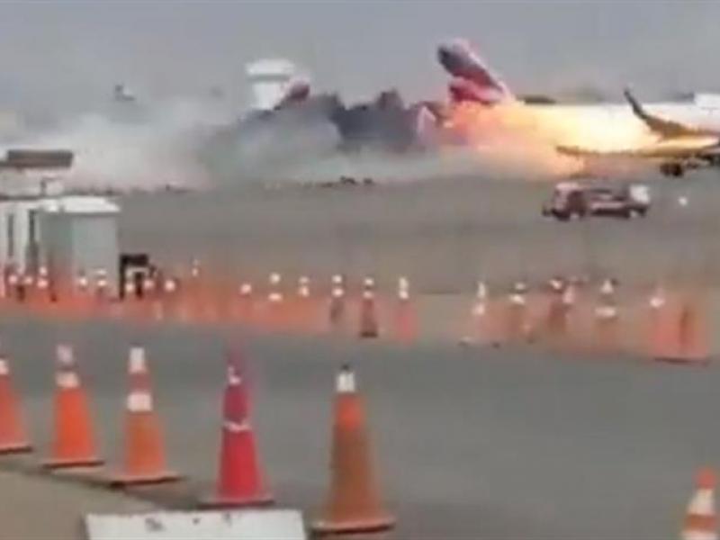 Αεροσκάφος της γραμμής στη φάση της απογείωσης συγκρούστηκε με φορτηγό της πυροσβεστικής που μπήκε στον διάδρομο, με αποτέλεσμα να σκοτωθούν δυο πυροσβέστες, να πάρει φωτιά φτερό και μέρος της ατράκτου και να χρειαστεί να απομακρυνθούν εσπευσμένα οι επιβάτες, σύμφωνα με συγκλίνουσες επίσημες πηγές.