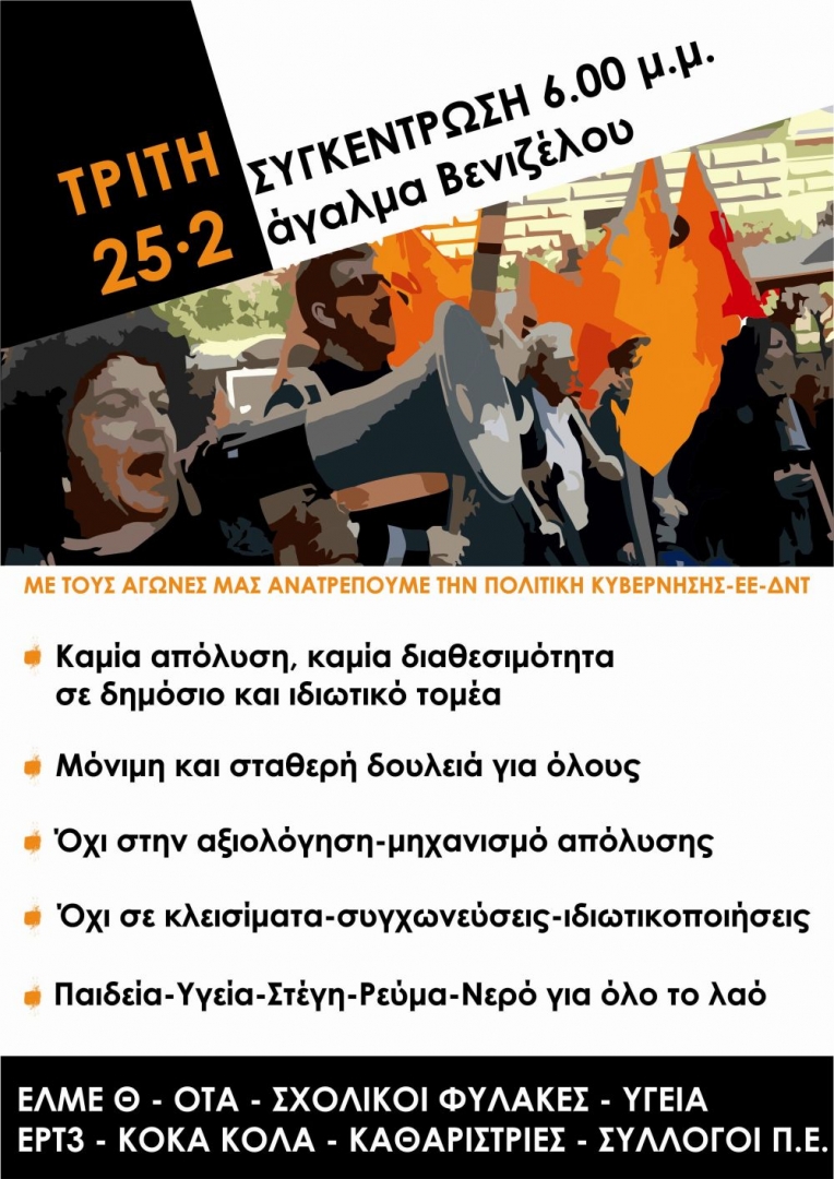 29.01.2014 - 08:41 Συγκέντρωση και πορεία προς την ΕΡΤ3 από τις ΕΛΜΕ Θεσσαλονίκης, ΟΤΑ, σχολικούς φύλακες, υγεία, Σύλλογοι ΠΕ, καθαρίστριες ΑΝΑΚΟΙΝΩΣΕΙΣ Συγκέντρωση και πορεία προς την ΕΡΤ3 από τις ΕΛΜΕ Θεσσαλονίκης, ΟΤΑ, σχολικούς φύλακες, υγεία, Σύλλογοι ΠΕ, καθαρίστριες