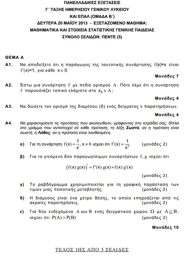 Πανελλήνιες 23.05.2013 - 11:24ΜΑΘΗΜΑΤΙΚΑ και στοιχεία στατιστικής γενικής παιδείας - Τα θέματα - Πανελλήνιες 2013 Alfavita Newsroom Facebook Twitter Linkedin E-mail ΜΑΘΗΜΑΤΙΚΑ και στοιχεία στατιστικής γενικής παιδείας - Τα θέματα - Πανελλήνιες 2013Δείτε εδώ τις προτεινόμενες απαντήσεις στα Μαθηματικά και στοιχεία στατιστικής γενικής παιδείαςΔείτε εδώ τις εκτιμήσεις των θεμάτων Δείτε εδώ το πρόγραμμα των πανελλαδικών εξετάσεων 2013 Όλα τα νέα και οι ειδήσεις που αφορούν τις ΠανελλήνιεςΠανελλαδικές 2025: Νέα πανωλεθρία για τα επτά Τμήματα ΦυσικήςΜια πικρή «ιστορία» των Πανελληνίων εξετάσεων«Οικογενειακή» υπόθεση οι Πανελλαδικές 2025: Αδέρφια από τη Θεσσαλονίκη κατακτούν μαζί την Ιατρική του ΑΠΘ Ακολουθήστε το Alfavita στo Google News Ακολουθήστε το Alfavita στo Viber θέματα πανελληνίων