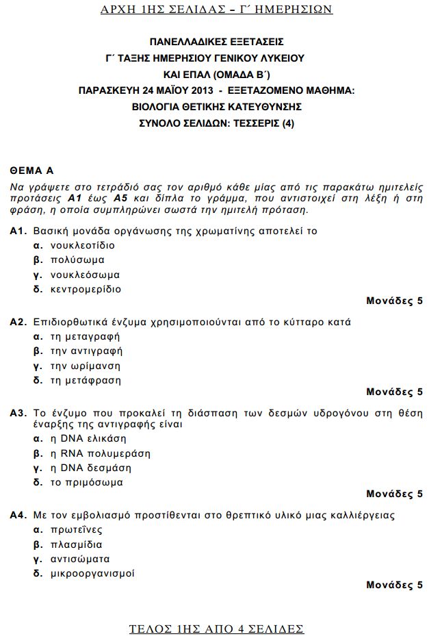 Πανελλήνιες 24.05.2013 - 10:47Βιολογία Θετικής Κατεύθυνσης- Τα θέματα- Πανελλήνιες εξετάσεις 2013 Alfavita Newsroom Facebook Twitter Linkedin E-mail Βιολογία Θετικής Κατεύθυνσης- Τα θέματα- Πανελλήνιες εξετάσεις 2013 Δείτε εδώ τις προτεινόμενες απαντήσεις στη Βιολογία κατεύθυνσης Δείτε εδώ τις εκτιμήσεις των θεμάτων Δείτε εδώ το πρόγραμμα των πανελλαδικών εξετάσεων 2013 Όλα τα νέα και οι ειδήσεις που αφορούν τις ΠανελλήνιεςΠανελλαδικές 2025: Νέα πανωλεθρία για τα επτά Τμήματα ΦυσικήςΜια πικρή «ιστορία» των Πανελληνίων εξετάσεων«Οικογενειακή» υπόθεση οι Πανελλαδικές 2025: Αδέρφια από τη Θεσσαλονίκη κατακτούν μαζί την Ιατρική του ΑΠΘ Ακολουθήστε το Alfavita στo Google News Ακολουθήστε το Alfavita στo Viber θέματα πανελλαδικών