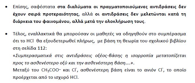 Όπως ήδη αναφέρεται στο Δελτίο Τύπου της ΕΕΧ, τα θέματα της Χημείας και ιδιαίτερα τα θέματα Δ3 και Δ4 απευθύνονταν σε μαθητές που όχι μόνο γνώριζαν πολύ καλά την ύλη τους, αλλά μπορούσαν να συνδυάσουν και να εφαρμόσουν τις γνώσεις τους εξάγοντας συμπεράσματα και σχεδιάζοντας την τακτική επίλυσης ενός προβλήματος. Συγκεκριμένα στο θέμα Δ3, αντιμετώπιζαν το πρόβλημα της μερικής εξουδετέρωσης ενός ισχυρού και ενός ασθενούς οξέος από μία ισχυρή βάση με βάση τις χημικές εξισώσεις: