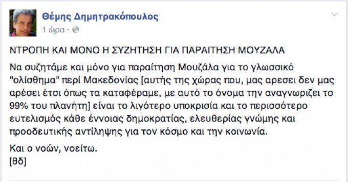 .Ωστόσο το Μαξίμου φαίνεται να στηρίζει τον υπουργό και ότι δεν είναι απαραίτητο να παραιτηθεί ο Μουζάλας επειδή στη ρύμη του λόγου αποκάλεσε την ΠΓΔΜ Μακεδονία.