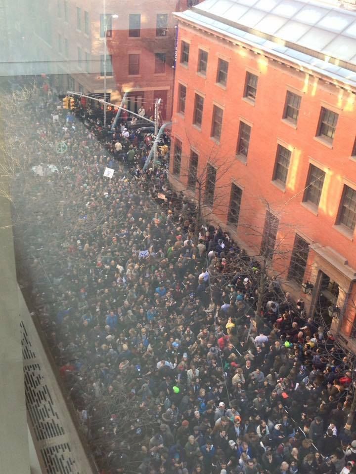 Παράλληλα χιλιάδες άνθρωποι συγκεντρώθηκαν στο κέντρο της Νέας Υόρκης για να διαδηλώοσυν υπέρ της υποψηφιότητας του Μπέρνι Σάντερς για το χρίσμα των Δημοκρατικών. Στις φωτογραφίες που συνέλεξε το Telesur βλέπουμε το μεγάλο πλήθος των υποστηρικτών του Σάντερς.