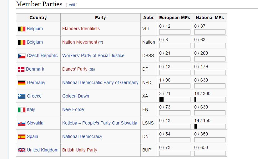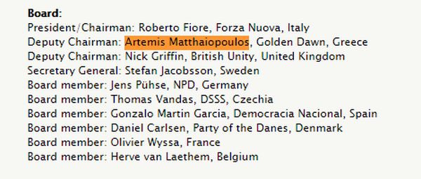 Στην “Συμμαχία για την Ειρήνη και την Ελευθερία”, πρόεδρος είναι ο Ιταλός φασίστας, επικεφαλής της Forza Nuova, Roberto Fiore και αντιπρόεδροι ο υπόδικος πρώην βουλευτής της Χρυσής Αυγής Αρτέμης Ματθαιόπουλος και ο εκδιωχθείς πρόεδρος του φασιστικού British National Party, Nick Griffin.