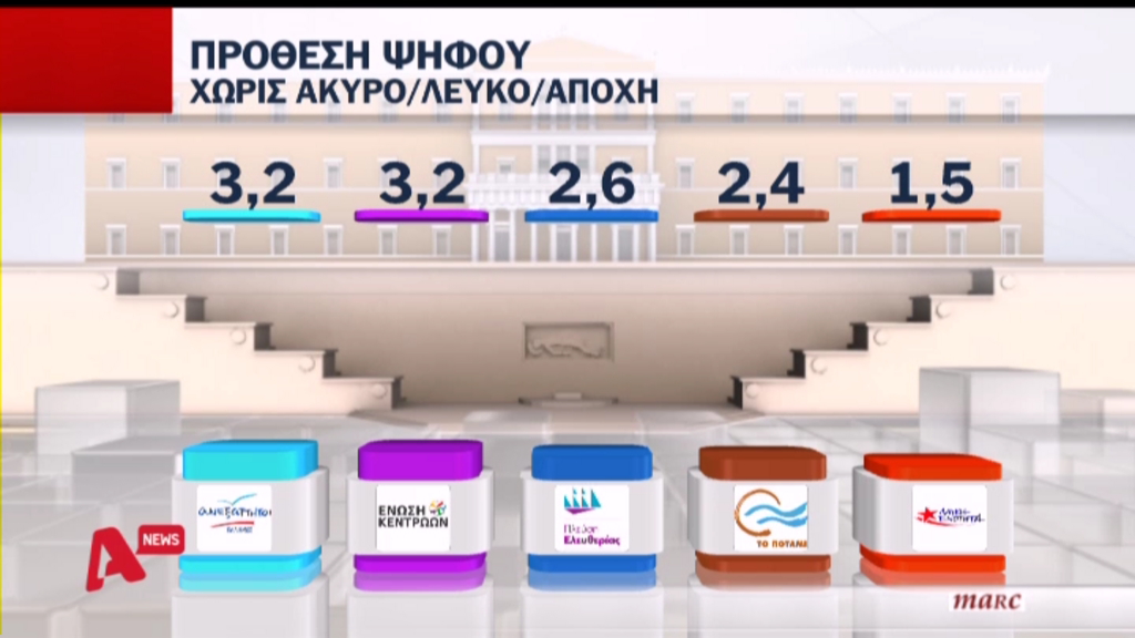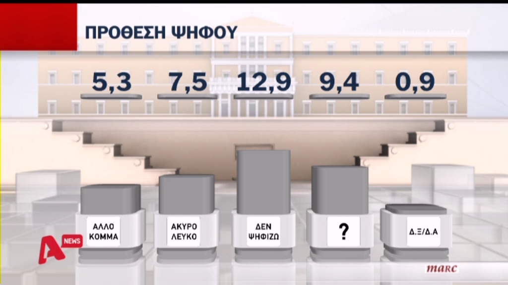Το 12,9% δηλώνει ότι δεν θα ψηφίσει, ενώ το αναποφάσιστο δηλώνει το 9,4% των ερωτηθέντων.
