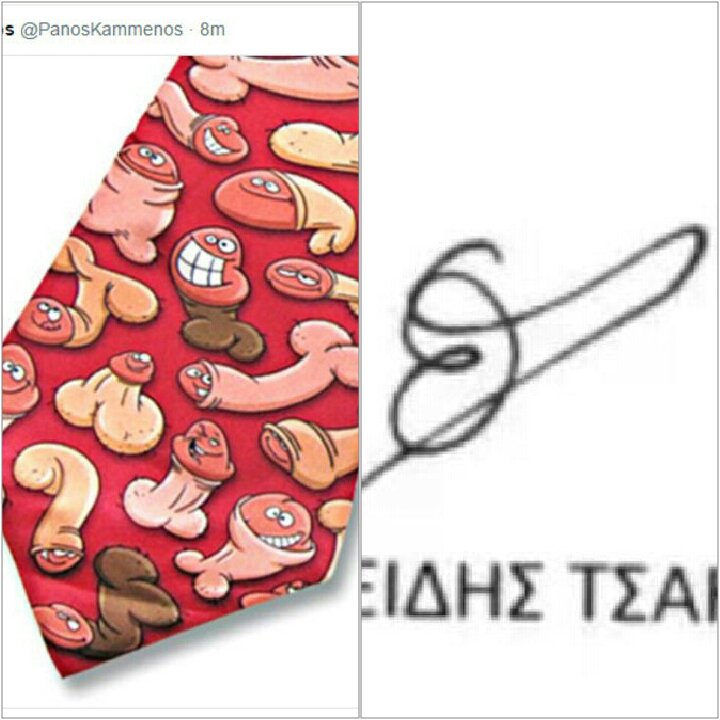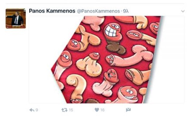 Σάλος προκλήθηκε χθες με ένα tweet που εμφανίστηκε στο λογαριασμό του Πάνου Καμμένου, λίγο μετά την ολοκλήρωση του Eurogroup, στο οποίο υπήρχε μια γραβάτα με φαλλούς.
