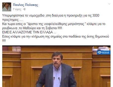 «Εμείς αλλάζουμε την Ελλάδα, εσείς κλάψτε για την κλήρωση της σημαίας στα παιδάκια της έκτης δημοτικού», γράφει σε ανάρτησή του.