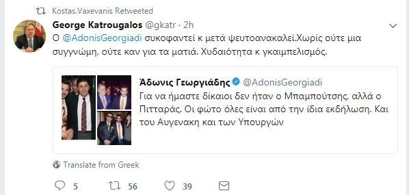 "Σε όλα ψεύτης.Ο Κατρούγκαλος κ Κουντουρά δεν είναι στην ίδια εκδήλωση με Μπαμπάμτση. Ο Πιτταράς φοράει άλλη γραβάτα"