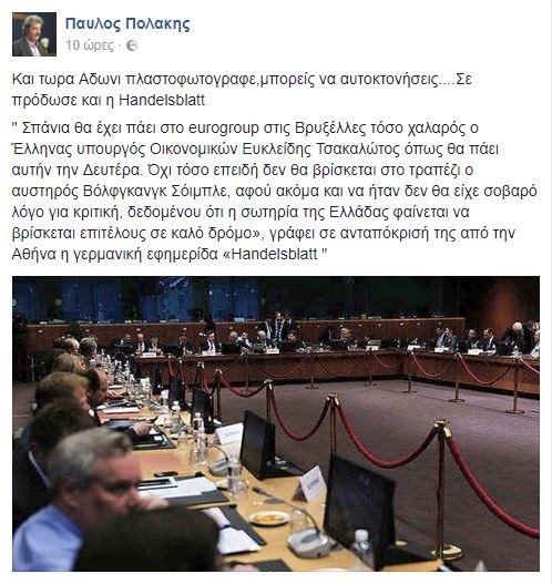 «Και τώρα Άδωνι πλαστοφωτογράφε, μπορείς να αυτοκτονήσεις. Σε πρόδωσε και η Handelsblatt» και παρέθεσε το εξής απόσπασμα του ρεπορτάζ: