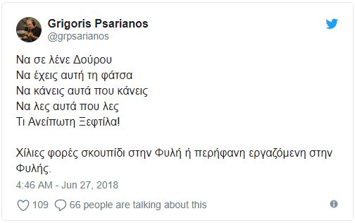 Η αισχρή ανάρτηση του βουλευτή στο twitter "μιλά" από μόνη της: