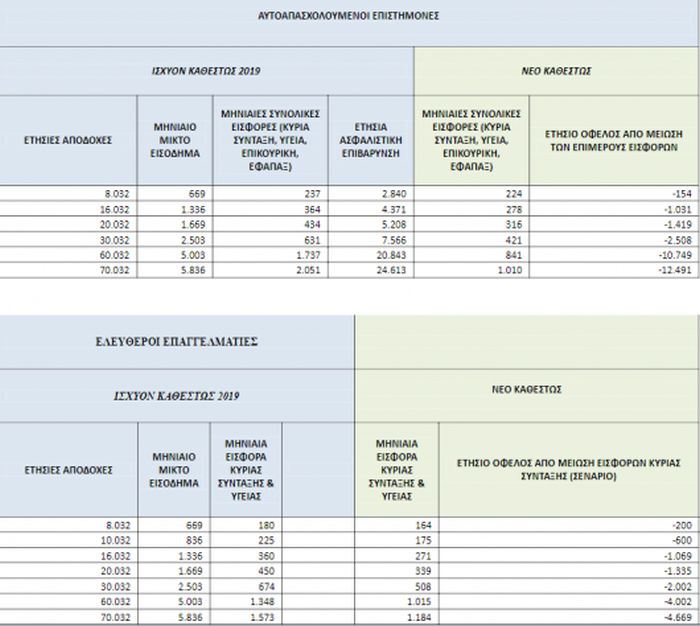 2) Μείωση ασφαλιστικών εισφορών ελεύθερων επαγγελματιών με εισόδημα από 7.000 ευρώ και πάνω έως 35% από 1/1/19. Αντίστοιχη μείωση έως και 35% θα ισχύει και για τους αγρότες. Παράλληλα, μειώνονται οι εισφορές για επικουρική σύνταξη και εφάπαξ γιατρών, δικηγόρων, μηχανικών στο ελάχιστο που ισχύει σήμερα, δηλαδή 64,5 ευρώ/μήνα.