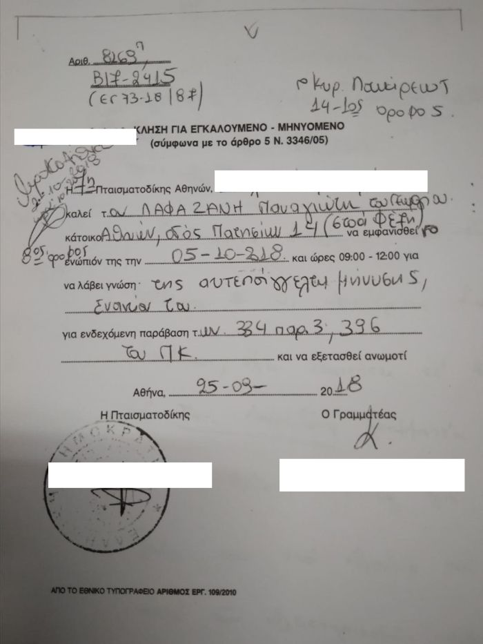 Πλέον ο επικεφαλής της ΛΑΕ θα πρέπει να παρουσιαστεί για απολογία στην πταισματοδίκη, την Παρασκευή 5/10/18.