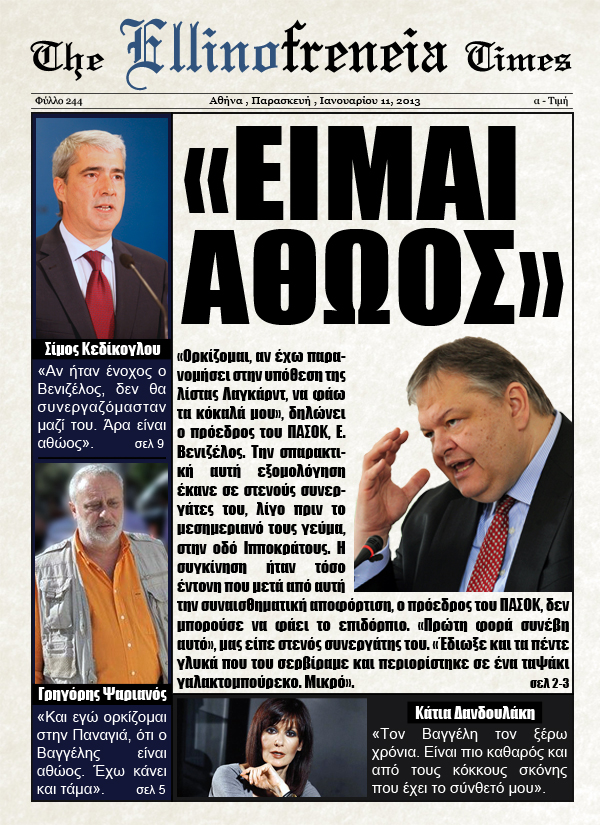 Δήλωση του Ε. Βενιζέλου: Είμαι αθώος!