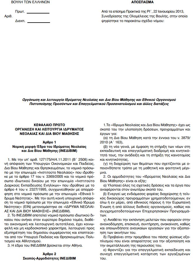 23.01.2013 - 15:02 Το πολυνομοσχέδιο του υπ. Παιδείας, με όλες τις τροπολογίες που ψηφίστηκε από τη Βουλή ΑΝΑΚΟΙΝΩΣΕΙΣ Το πολυνομοσχέδιο του υπ. Παιδείας, με όλες τις τροπολογίες που ψηφίστηκε από τη Βουλή